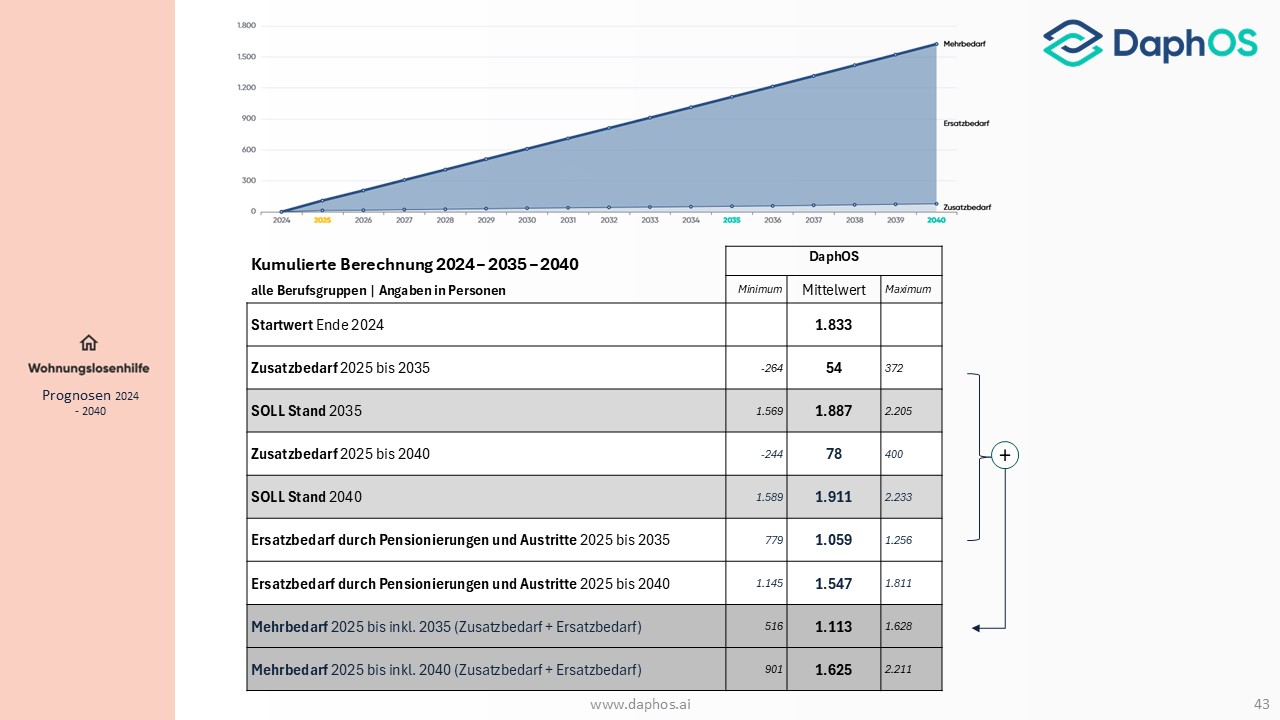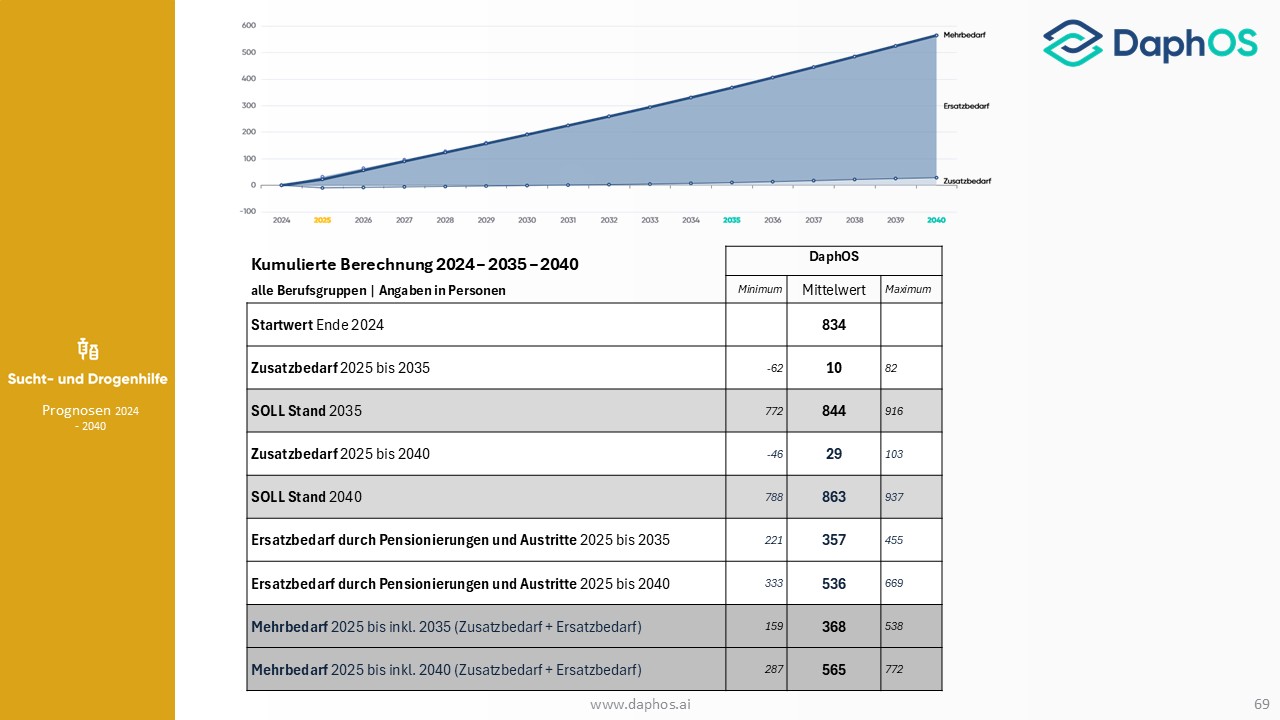 Die Prognose ist diesmal kein statischer Bericht, sondern eine moderne KI-Softwareplattform, die Organisationen künftig als strategisches Werkzeug dabei unterstützt, Szenarien durchzuspielen und Entscheidungen auf Basis aktueller Daten zu treffen. Ab Jänner 2026 starten Schulungen zur Nutzung der neuen Softwarelösung DaphOS, die es ermöglicht, eigene Daten aktuell zu halten, Prognosen für die einzelnen Organisationen zu erstellen und Szenarien flexibel anzupassen. Damit wird ein Instrument bereitgestellt, das nicht nur Transparenz schafft, sondern auch die Grundlage für eine vorausschauende Personalplanung bildet.