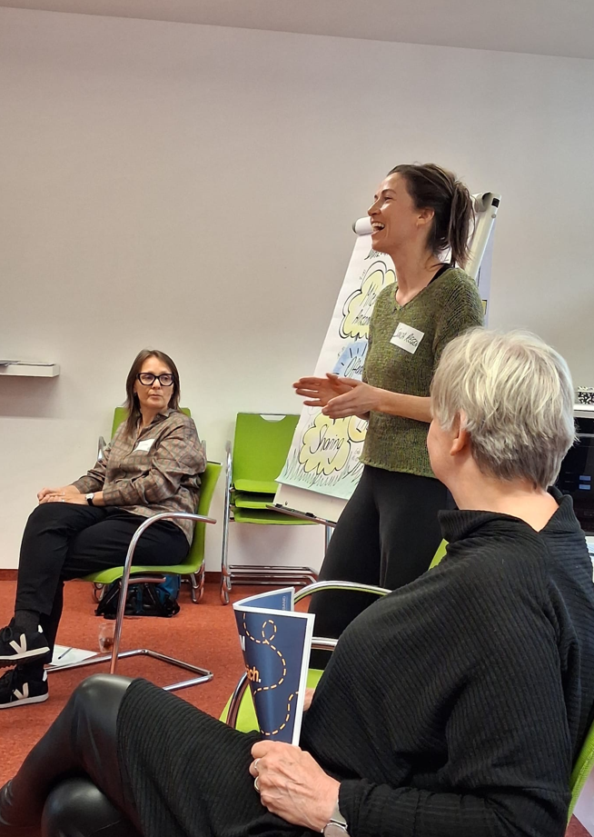 Ursula Zeisel, psychosoziale Leiterin von „Dialog – individuelle Suchthilfe“ teilte wertvollen Impulse rund um das komplexe Thema Suchterkrankungen im Plenum und leitete das Lab zu Ansätzen der akzeptanzorientierten/zieloffenen Suchtbehandlung. (c) DWSBarbara Schreder-Gegenhuber, Geschäftsführerin des Schweizer Haus Hadersdorf (SHH), und Corinna Obrist, therapeutische Leiterin der Gesundheitsgreisslerei des SHH, leiteten das Lab zu frauenspezifischer Suchtarbeit. Im Fokus stand ein feministischer Blick auf Entstehung, Behandung und Verlauf von Abhängigkeitserkrankungen. (c) DWS